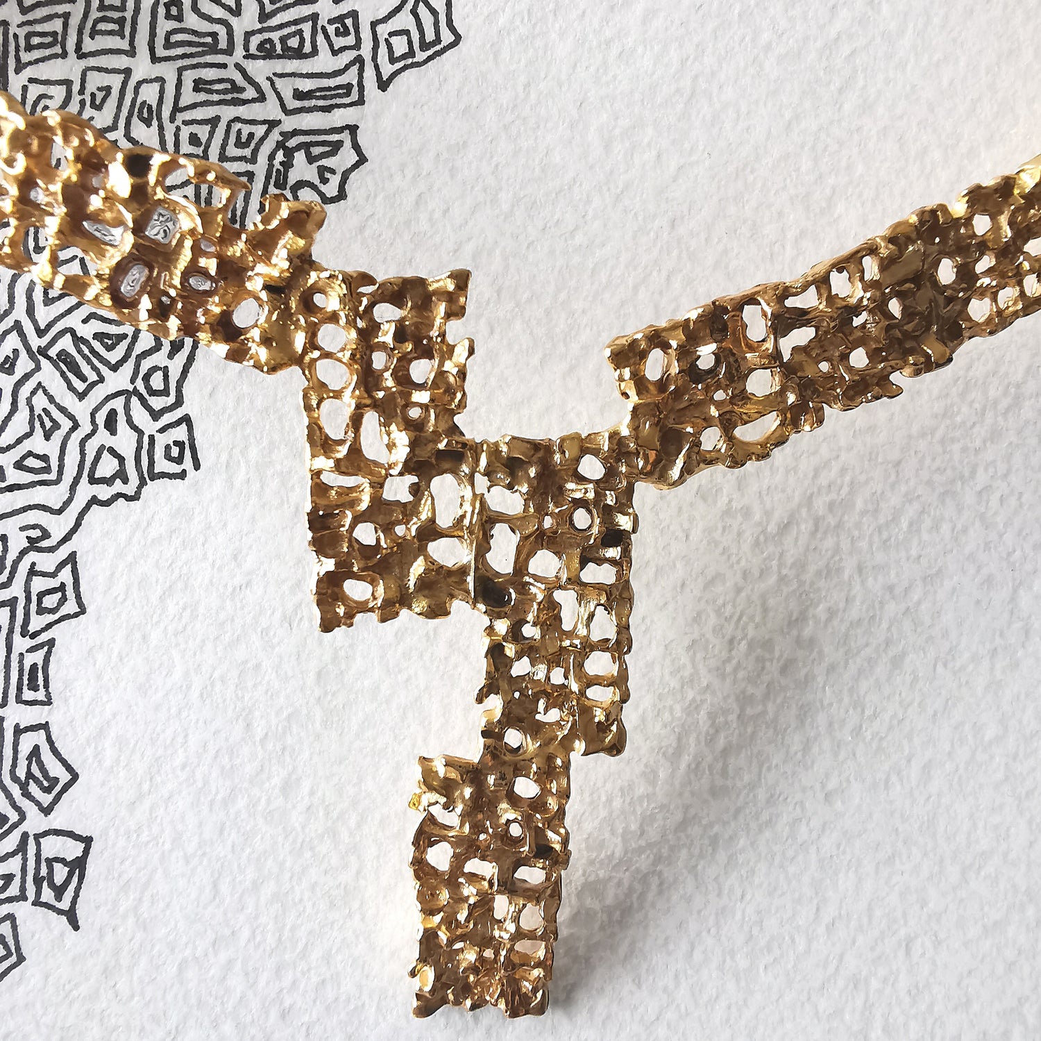 Toutes les pièces de ce tour de cou sont fabriquées à la main selon la technique de la cire perdue.